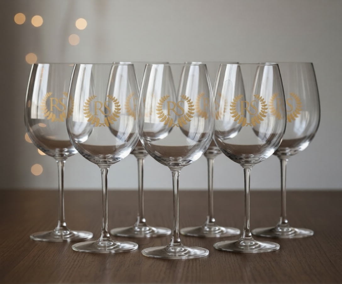 Eleva cada brindis con la distinción que tu bodega merece. Este set exclusivo de 7 copas de cristal fino combina una silueta clásica con nuestro sello distintivo en acabado dorado. Diseñadas para potenciar los aromas y sabores de tus mejores vinos, son la pieza central que faltaba en tu mesa.
